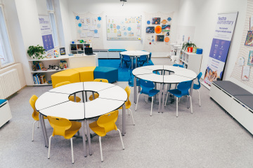 The key to high quality education is not only the content, but also the environment in which children learn. That is why we have created modern classrooms that can adapt to different teaching approaches as well as the individual needs of students.