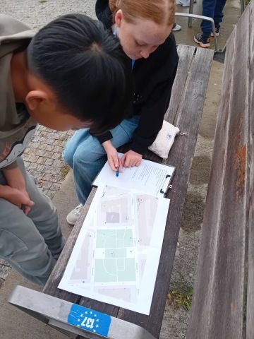 They first worked in groups with various types of maps, compared them and noted down key information into their worksheets. Afterwards they moved to the surroundings of the school where they looked for landmarks, checked whether they could navigate correctly using a map and tried out teamwork in a real setting.