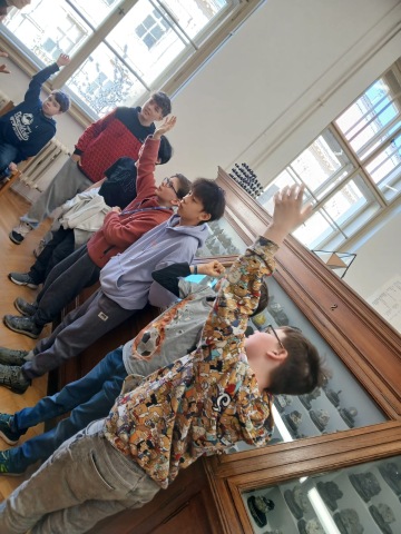 They visited an interactive exhibition of map collections and a cartographic archive, where they learned how maps are created and how our understanding of the world has evolved over time. During a guided tour of the mineralogical collection, they explored minerals up close and gained insight into their properties and formation.