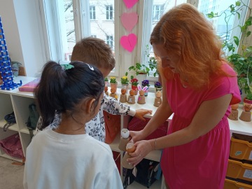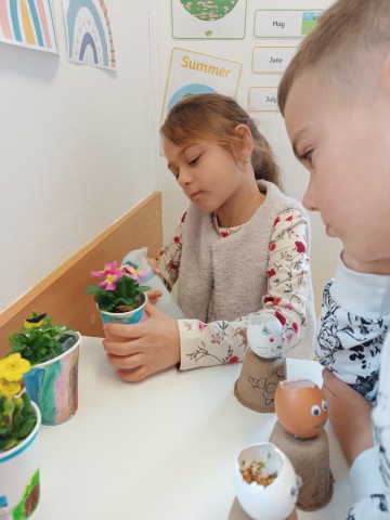 The project also included a creative and practical part, which the children really enjoyed. Each child made their own flower pot, in which they then planted a flower. These flowers now serve as cheerful spring decorations in our classroom and remind the children of everything they learned during the project. Thanks to this, they gained not only new knowledge, but also the joy of creating something of their own and caring for something living.